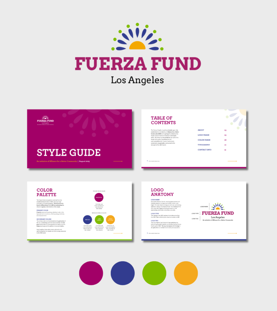 Alliance for a Better Community (ABC) launched the Fuerza Fund, the first community-driven philanthropy dedicated to building power and directing resources to Latino/a organizations across the Los Angeles region. I supported the launch by developing the fund’s visual identity, including logo design, color palette, and a comprehensive brand style guide, which created a cohesive and mission-aligned foundation to support awareness, communication, and long-term growth.
